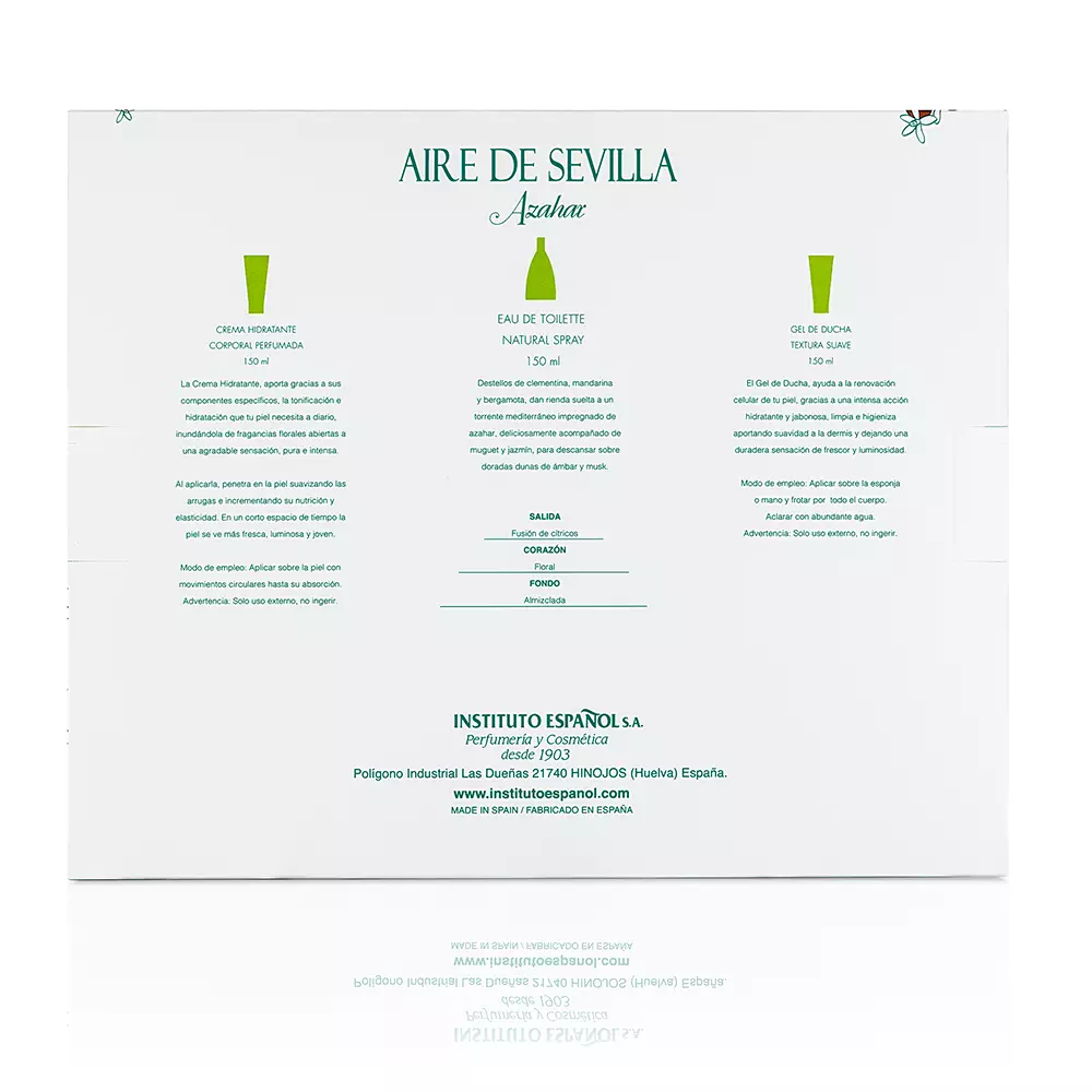 Nước hoa AGUA FRESCA DE AZAHAR SET Gift Set cho nữ của hãng Aire Sevilla là một hương thơm tươi mát, nhẹ nhàng và tinh tế, được thiết kế dành riêng cho những người phụ nữ thanh lịch và tự tin.