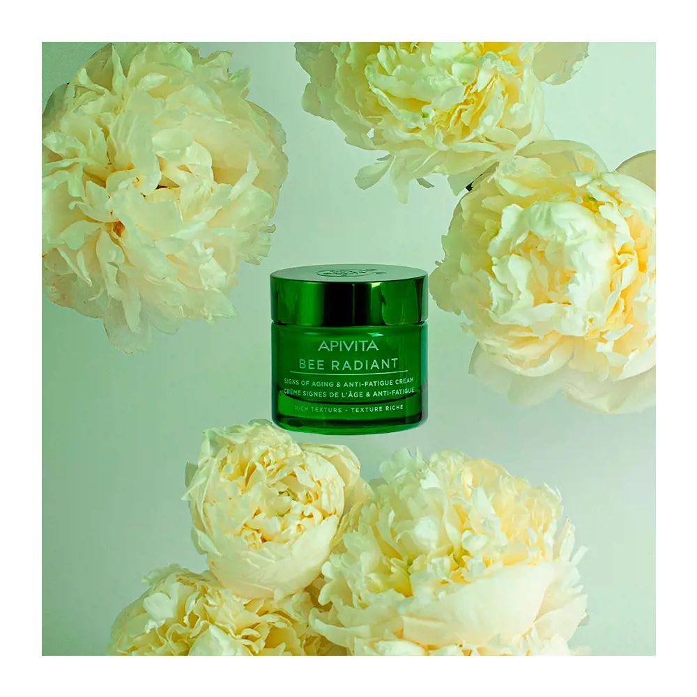– BEE RADIANT Crema Signos de la Edad y Anti- fatiga là dòng kem dưỡng da mặt cao cấp đến từ thương hiệu Apivita của Hy Lạp. Sản phẩm được chiết xuất từ mật ong và các thành phần thiên nhiên dành riêng cho làn da có dấu hiệu lão hóa và mệt mỏi.