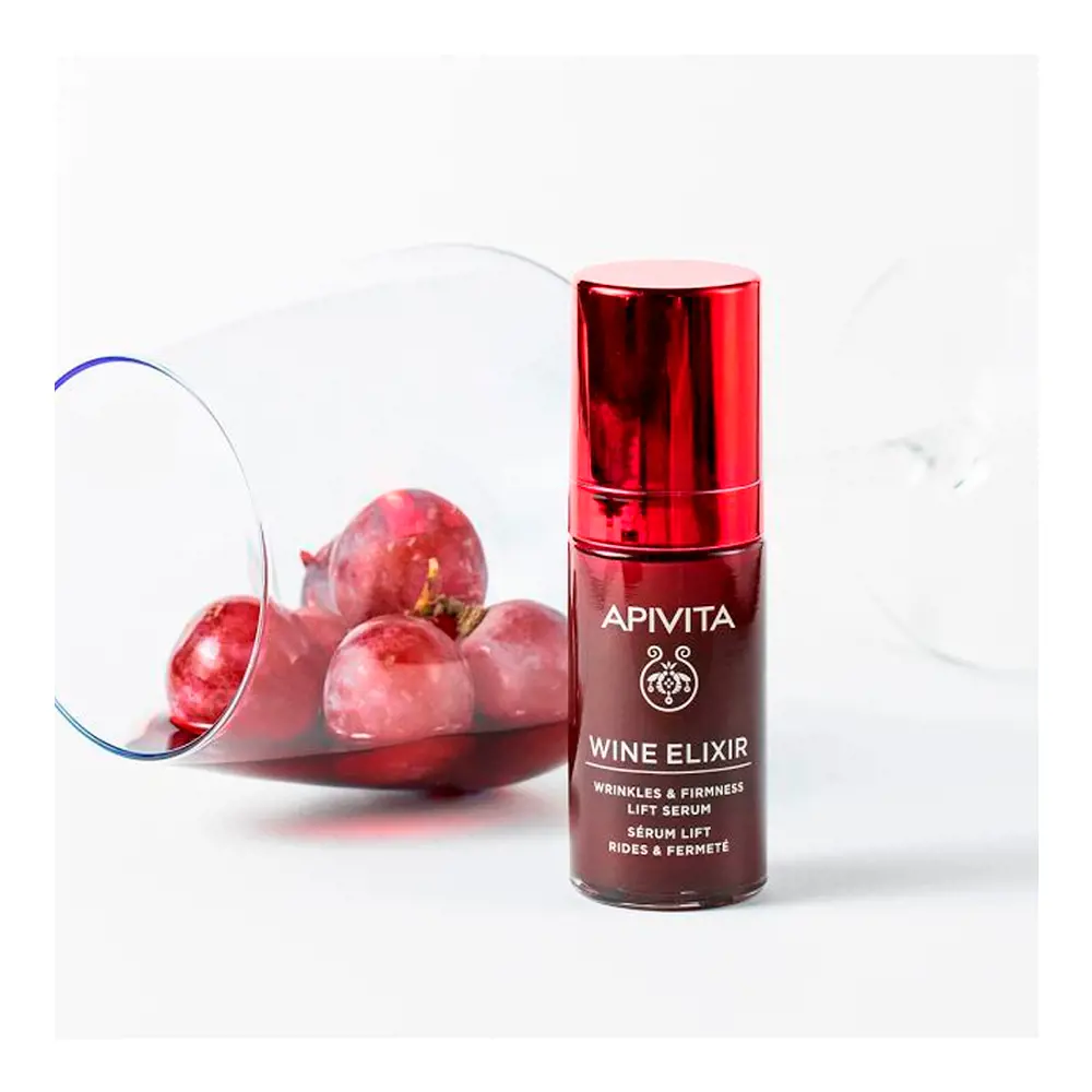 – WINE ELIXIR antiarrugas y reafirmante con efecto lift là sản phẩm chống lão hóa và săn chắc làn da với hiệu ứng nâng cơ đến từ thương hiệu Apivita của Hy Lạp. Với thành phần chính chiết xuất từ nho đỏ Santorini có khả năng chống oxy hóa mạnh mẽ và một s