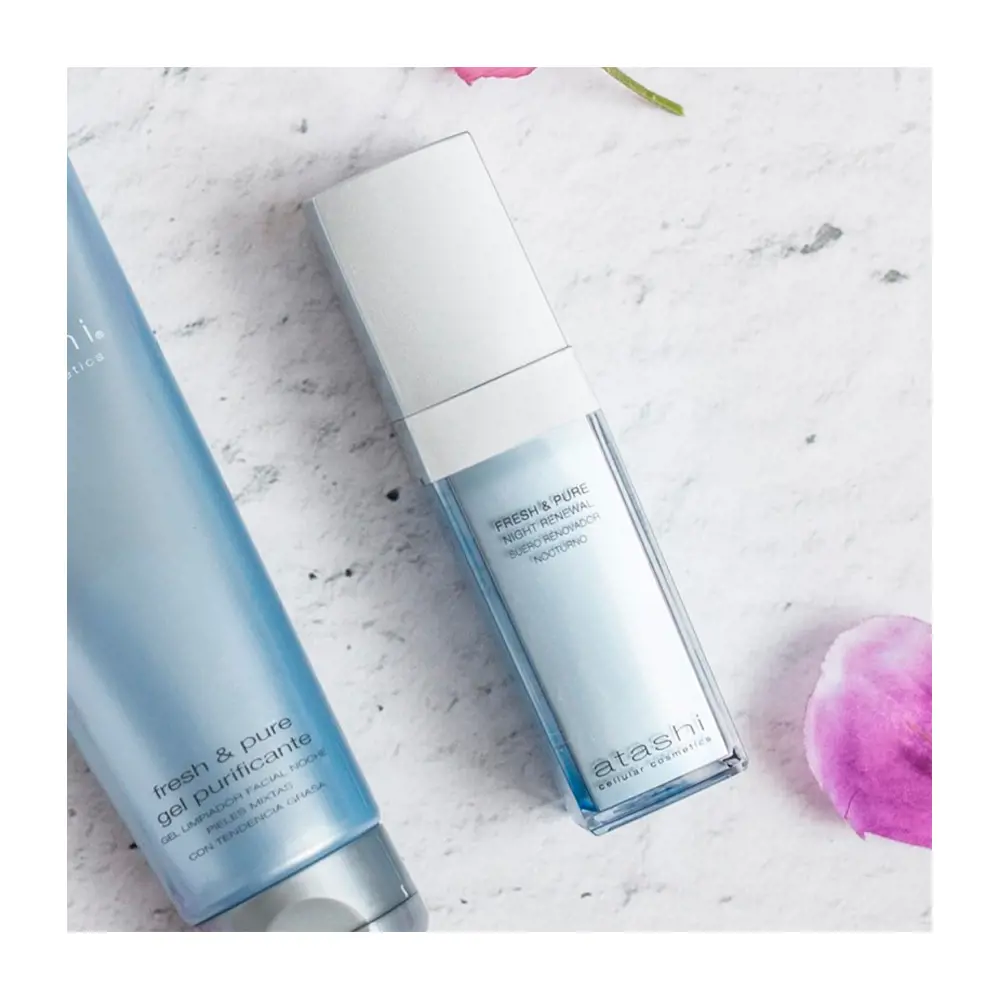 Sản phẩm Atashi FRESH & PURE suero tái tạo ban đêm, giúp da khỏe mạnh, căng mịn, trẻ trung. Thích hợp cho mọi loại da.