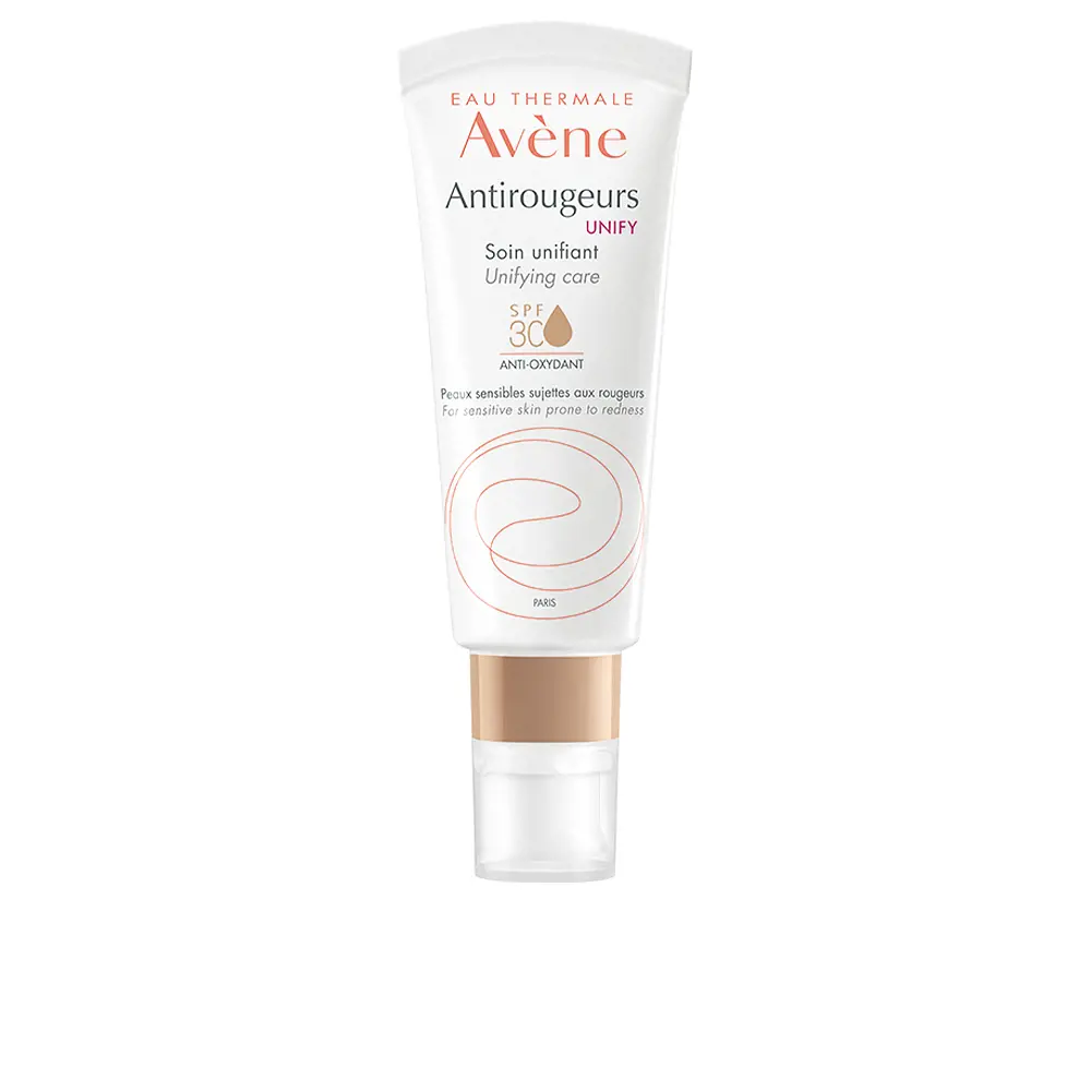 ANTI- ROJECES UNIFY crema con color SPF30 của hãng Avène là kem chống nắng có màu, được thiết kế dành riêng cho da nhạy cảm, dễ bị đỏ hoặc bị chứng đa hồng ban cung cấp khả năng bảo vệ khỏi tác hại của tia UVA và UVB và làm dịu mẩn đỏ và kích ứng.
