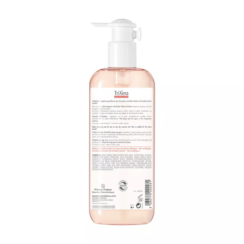 TRIXERA NUTRITION gel nettoyante nutri- fluide là sản phẩm sữa tắm đến từ thương hiệu mỹ phẩm nổi tiếng Avène của Pháp. Sữa tắm TRIXERA NUTRITION chính là giải pháp dành cho những làn da nhạy cảm, khô ráp. Sản phẩm được nghiên cứu đặc biệt để làm sạch nhẹ nhàng mà vẫn nuôi dưỡng, bảo vệ làn da.