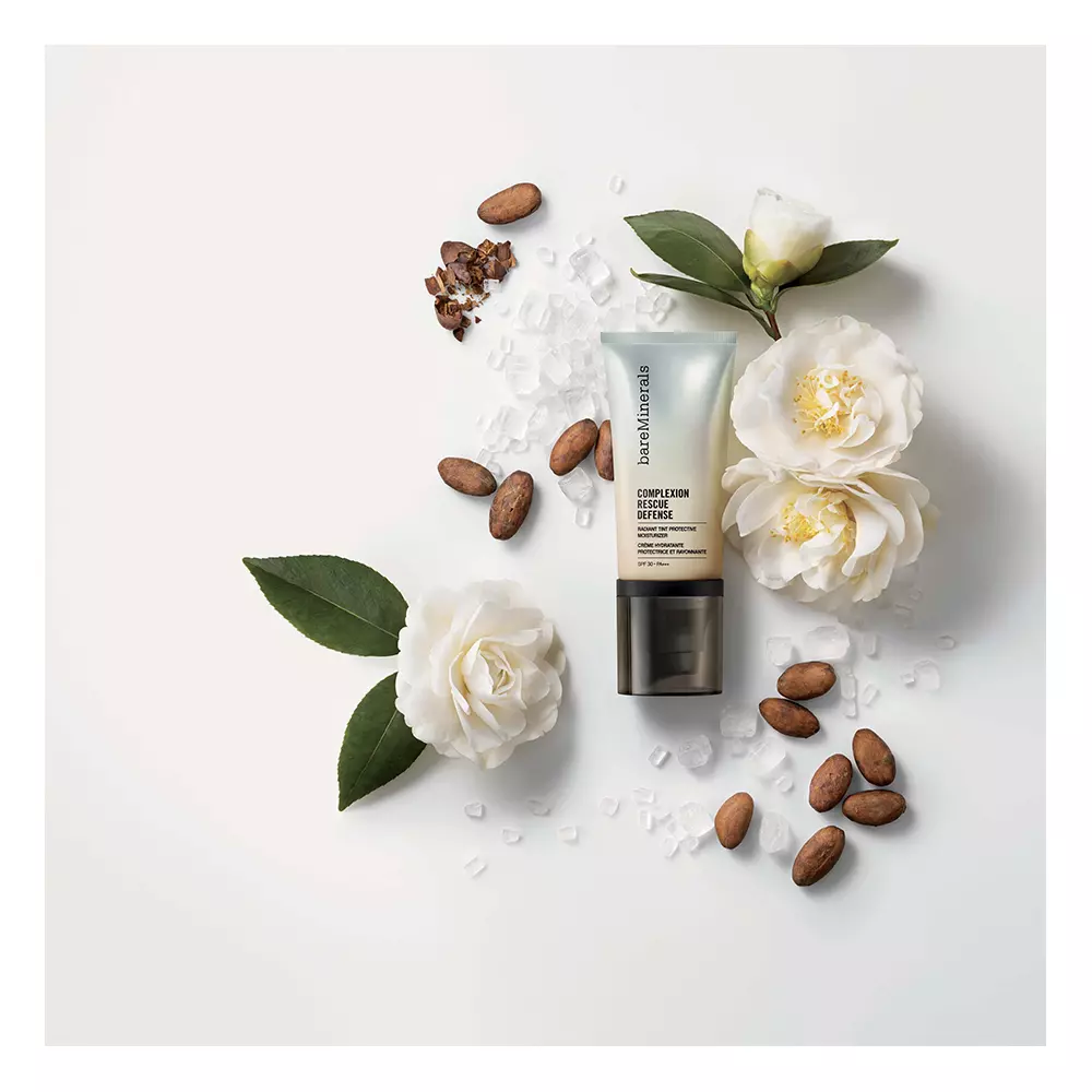 Kem dưỡng da bareMinerals COMPLEXION RESCUE DEFENSE SPF30, bảo vệ và làm sáng da, cung cấp độ ẩm và chống nắng hiệu quả.