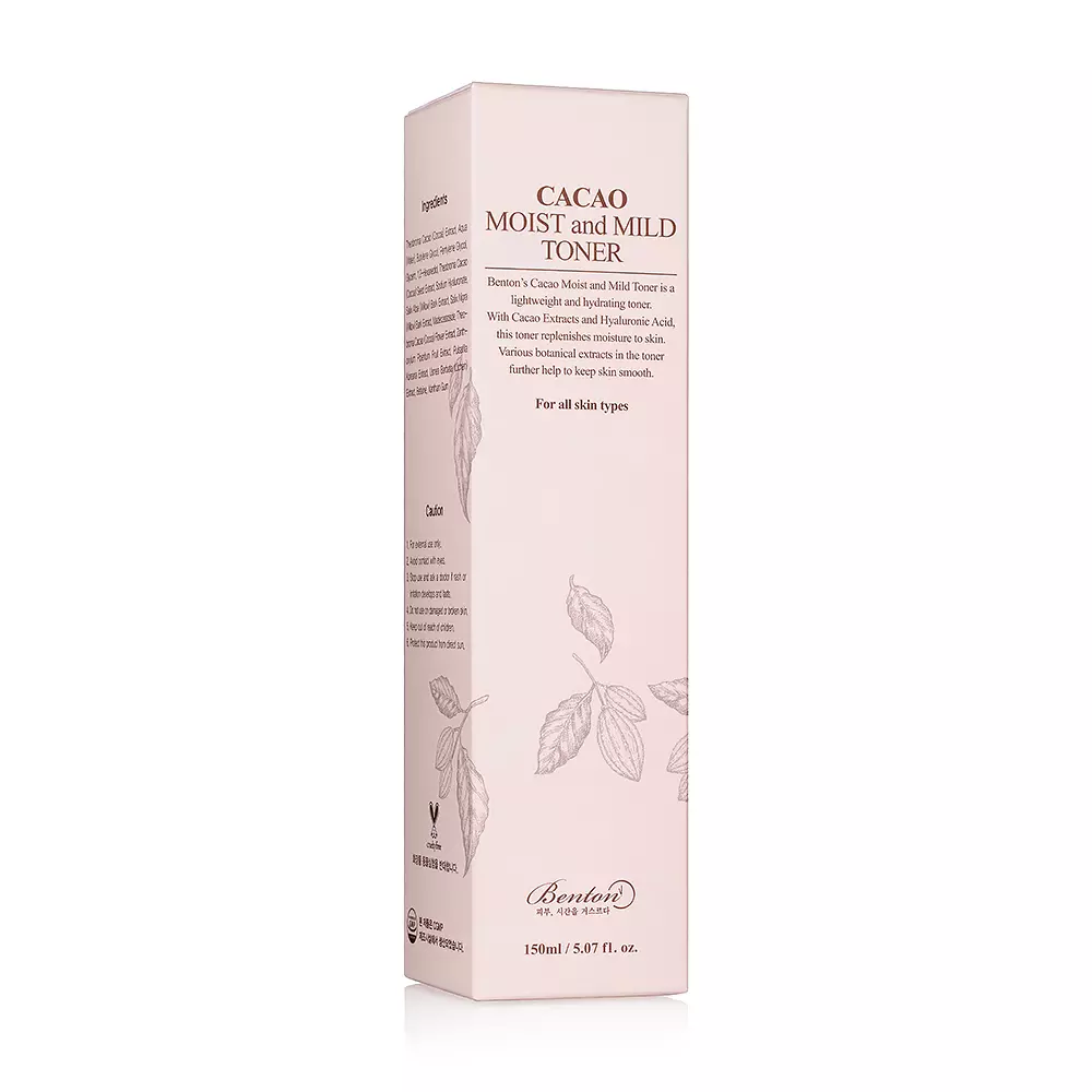 Toner Benton CACAO MOIST AND MILD giúp cấp ẩm, làm dịu da, phù hợp cho làn da nhạy cảm, mang lại làn da khỏe mạnh, mềm mại.