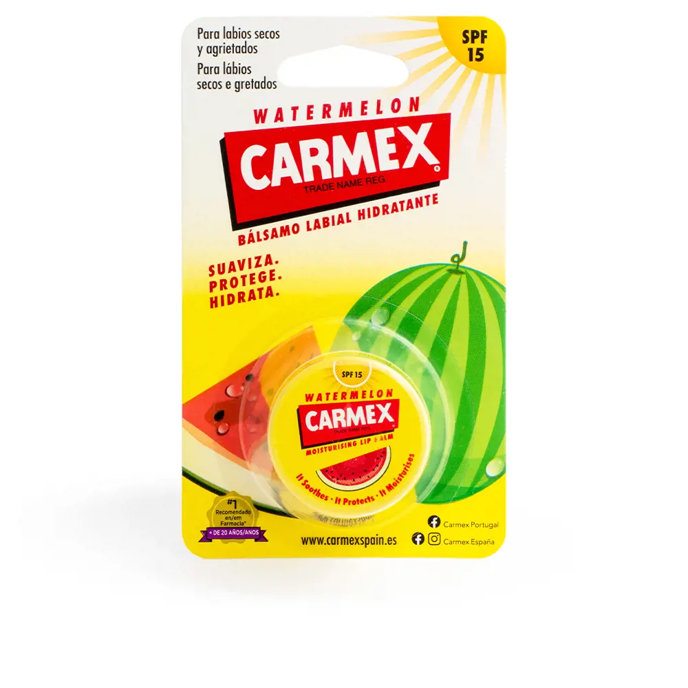 Carmex SANDÍA bálsamo hidratante giúp môi mềm mịn, căng bóng với hương vị dưa hấu tươi mát, bảo vệ và nuôi dưỡng môi hiệu quả.
