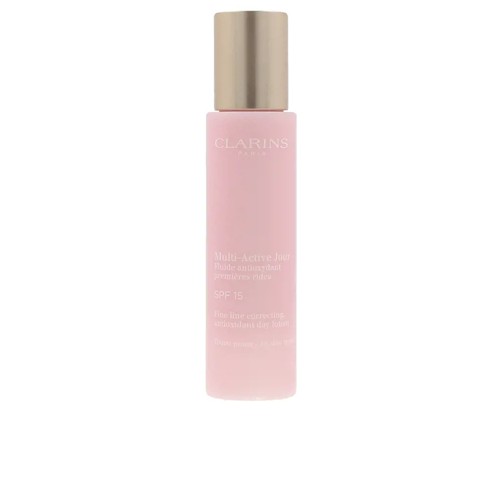 Multi- Active Fluide Jour SPF15 của Clarins là một loại kem dưỡng ẩm ban ngày nhẹ nhàng, dễ thẩm thấu, không gây nhờn rít, phù hợp với mọi loại da, kể cả da nhạy cảm. Sản phẩm này giúp dưỡng ẩm sâu, làm mềm da, đồng thời cải thiện độ đàn hồi và săn chắc của da. SPF 15 bảo vệ da khỏi tác hại của tia UVA và UVB, giúp ngăn ngừa đốm đen và lão hóa da sớm. Tuy nhiên, một số người cho rằng sản phẩm không đủ ẩm cho da khô hoặc da hỗn hợp thiên khô. Ngoài ra, giá thành của sản phẩm khá cao.