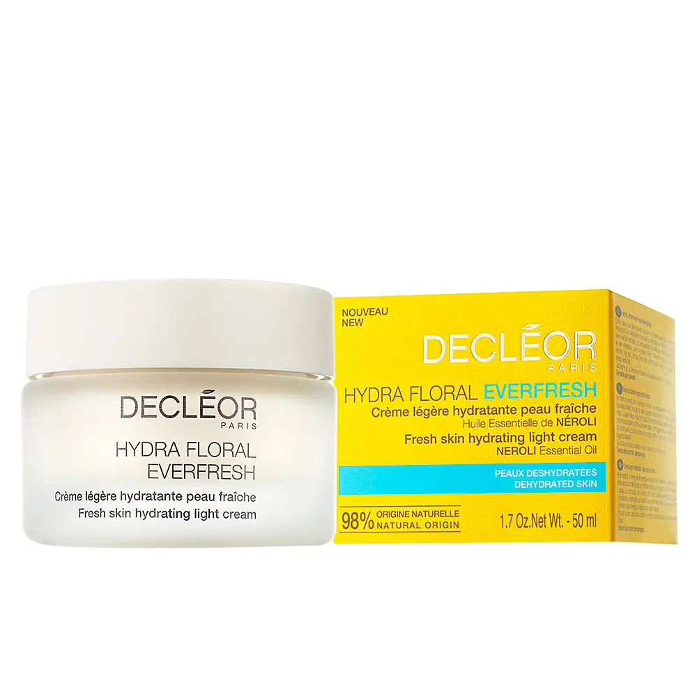 HYDRA FLORAL EVERFRESH crème légère hydratante của hãng Decléor là loại kem dưỡng ẩm nhẹ, cung cấp độ ẩm tức thì, tăng cường khả năng giữ ẩm, se khít lỗ chân lông, làm sáng tông màu da, giải độc và dưỡng ẩm sâu cho da mệt mỏi, xỉn màu.