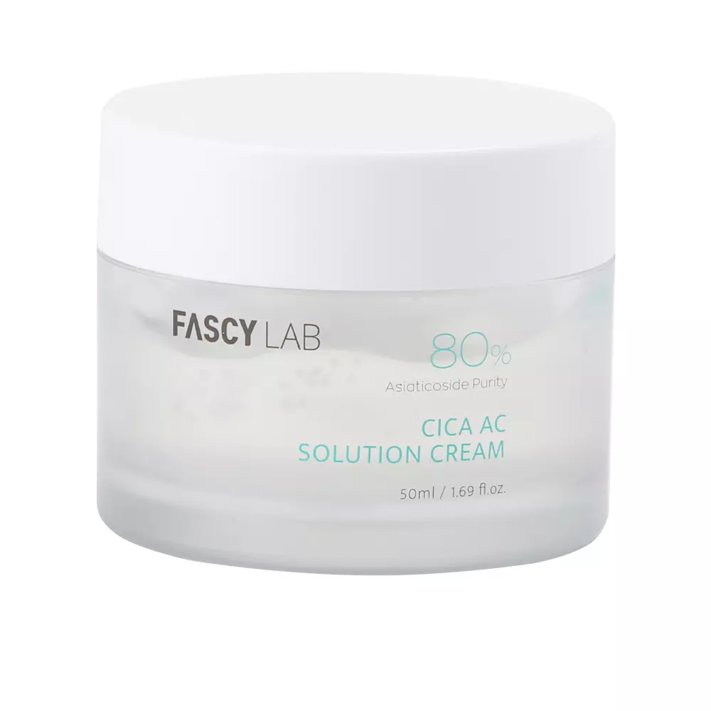Sản phẩm CICA AC solution cream của hãng Fascy là một loại kem dưỡng ẩm giúp làm dịu và phục hồi làn da bị kích ứng, nhạy cảm. Sản phẩm được đặc chế với thành phần chính là chiết xuất rau má và acid salicylic, giúp hỗ trợ điều trị mụn trứng cá và làm lành vết thương. Kem dưỡng ẩm này cũng có chứa các thành phần dưỡng ẩm tự nhiên như bơ hạt mỡ, glycerin và hyaluronic acid, giúp giữ cho làn da đủ ẩm và mềm mại.