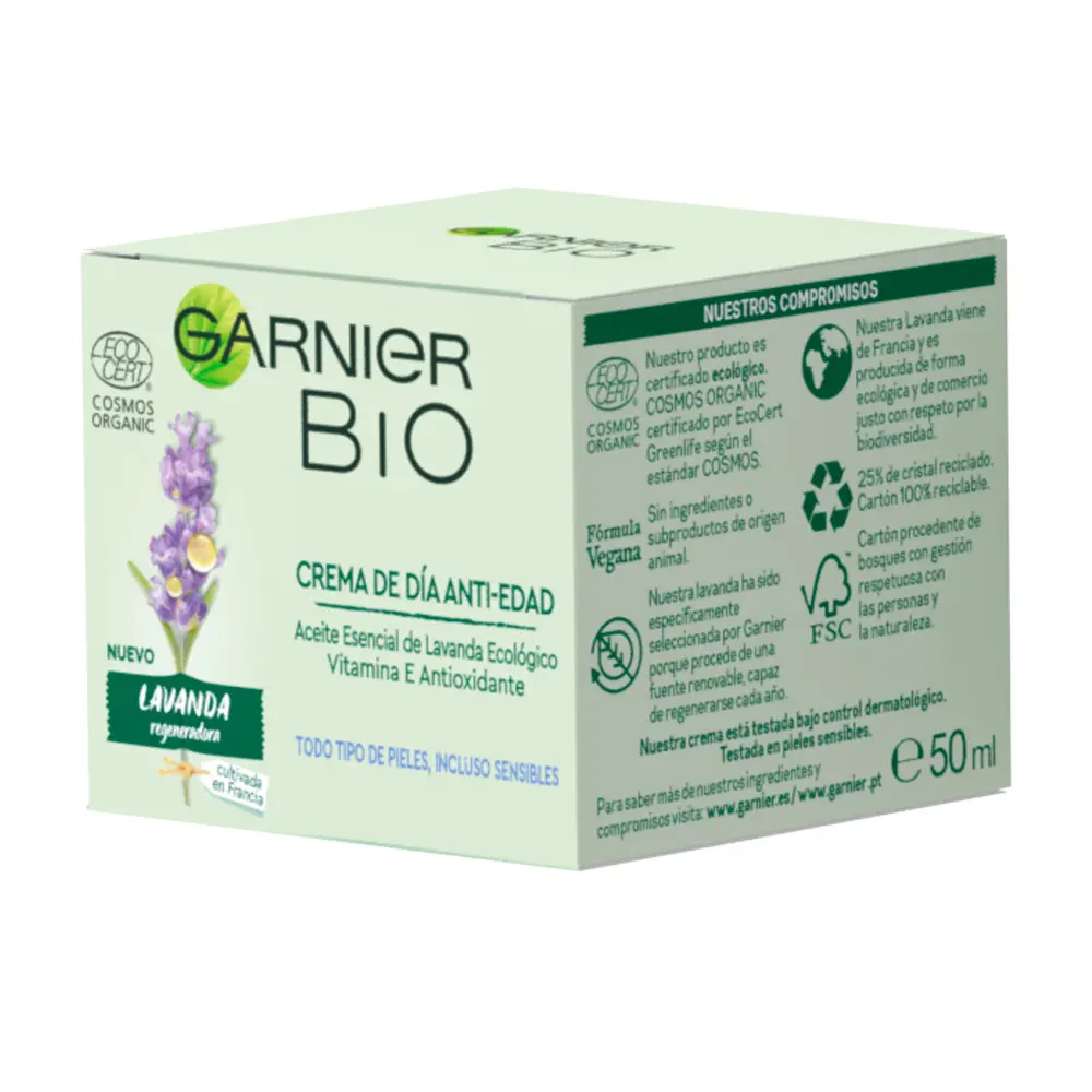 Garnier BIO ECOCERT Lavender Anti- Aging Day Cream là một sản phẩm chăm sóc da mặt hữu cơ và thiên nhiên, lý tưởng cho những người có làn da trưởng thành, muốn cải thiện các dấu hiệu lão hóa sớm như nếp nhăn, nếp nhăn, đốm đen, xỉn màu và mất độ tươi sáng. Dưới đây là thông tin chi tiết về sản phẩm: