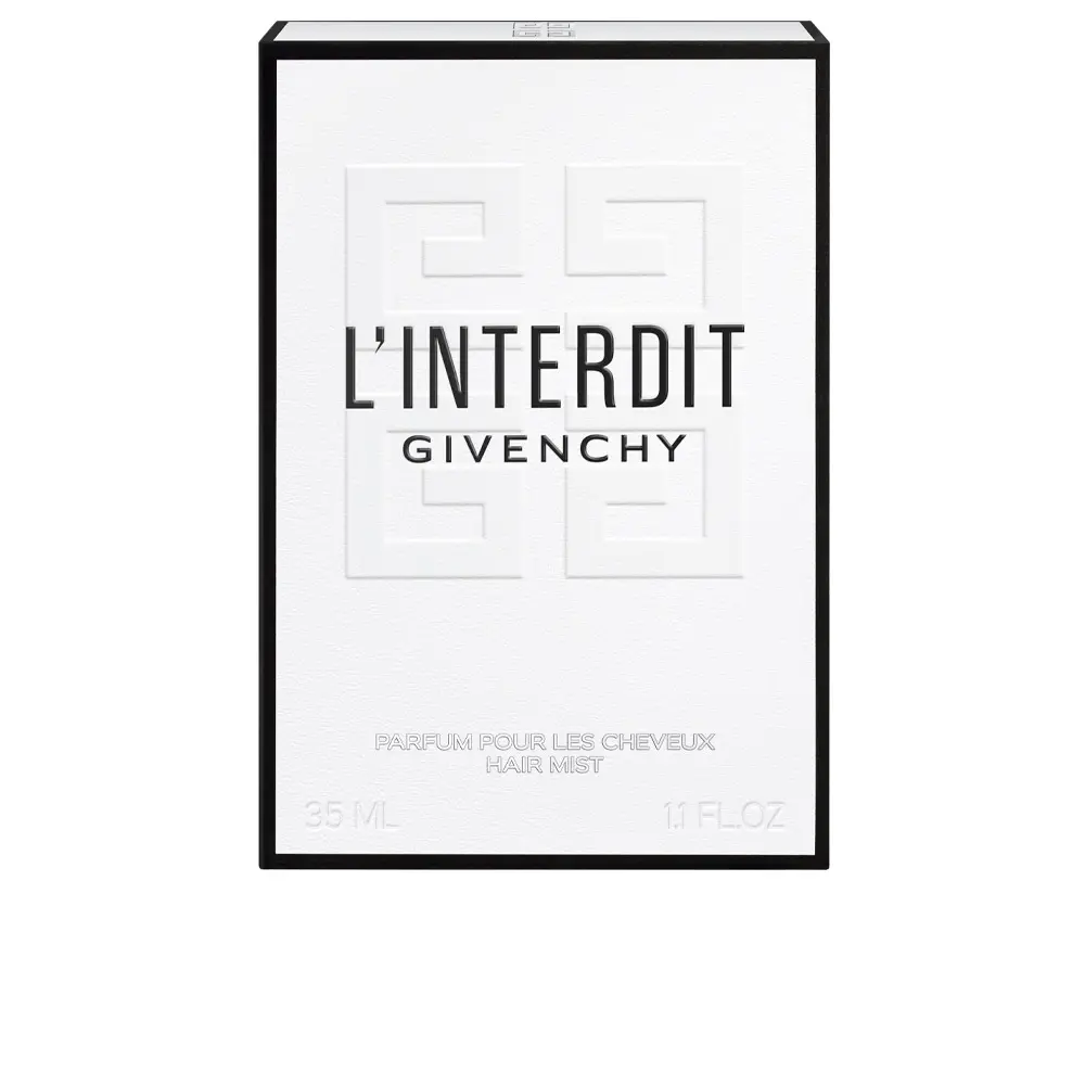 L’Interdit Hair Mist Hair Perfume là loại nước hoa xịt tóc cho nữ của hãng Givenchy, được ra mắt vào năm 2021. Hương thơm này được lấy cảm hứng từ hương nước hoa L’Interdit ban đầu, nhưng được pha chế nhẹ nhàng hơn và đặc biệt dành cho tóc.