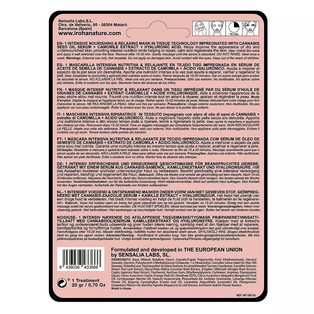 Iroha Nature CANNABIS tissue face mask nourishing & relaxing
