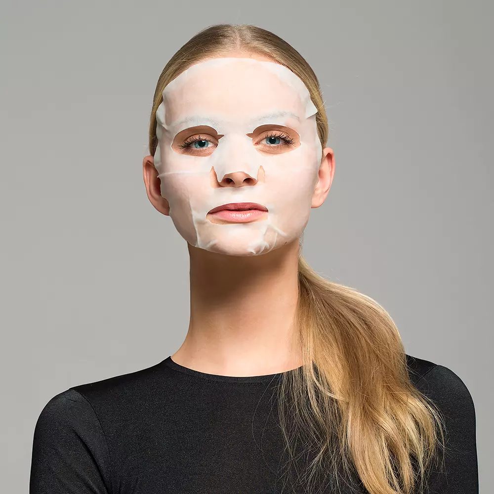 – Sau khi rửa mặt sạch, đắp mặt nạ lên da và vuốt nhẹ để mặt nạ ôm sát vào mặt.