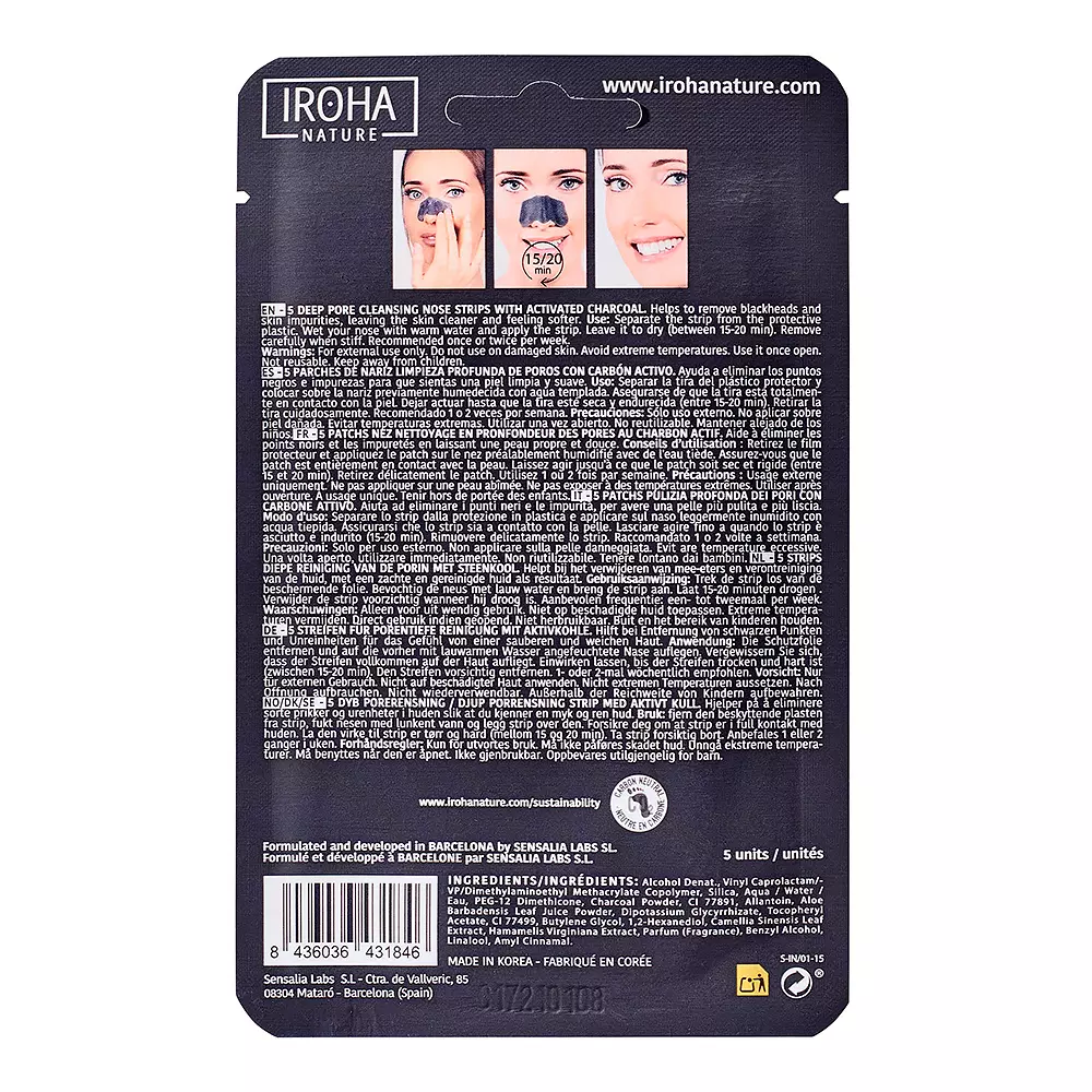 Miếng dán mũi Iroha Nature DETOX charcoal giúp loại bỏ bụi bẩn và bã nhờn, mang lại làn da sạch sẽ và thông thoáng.