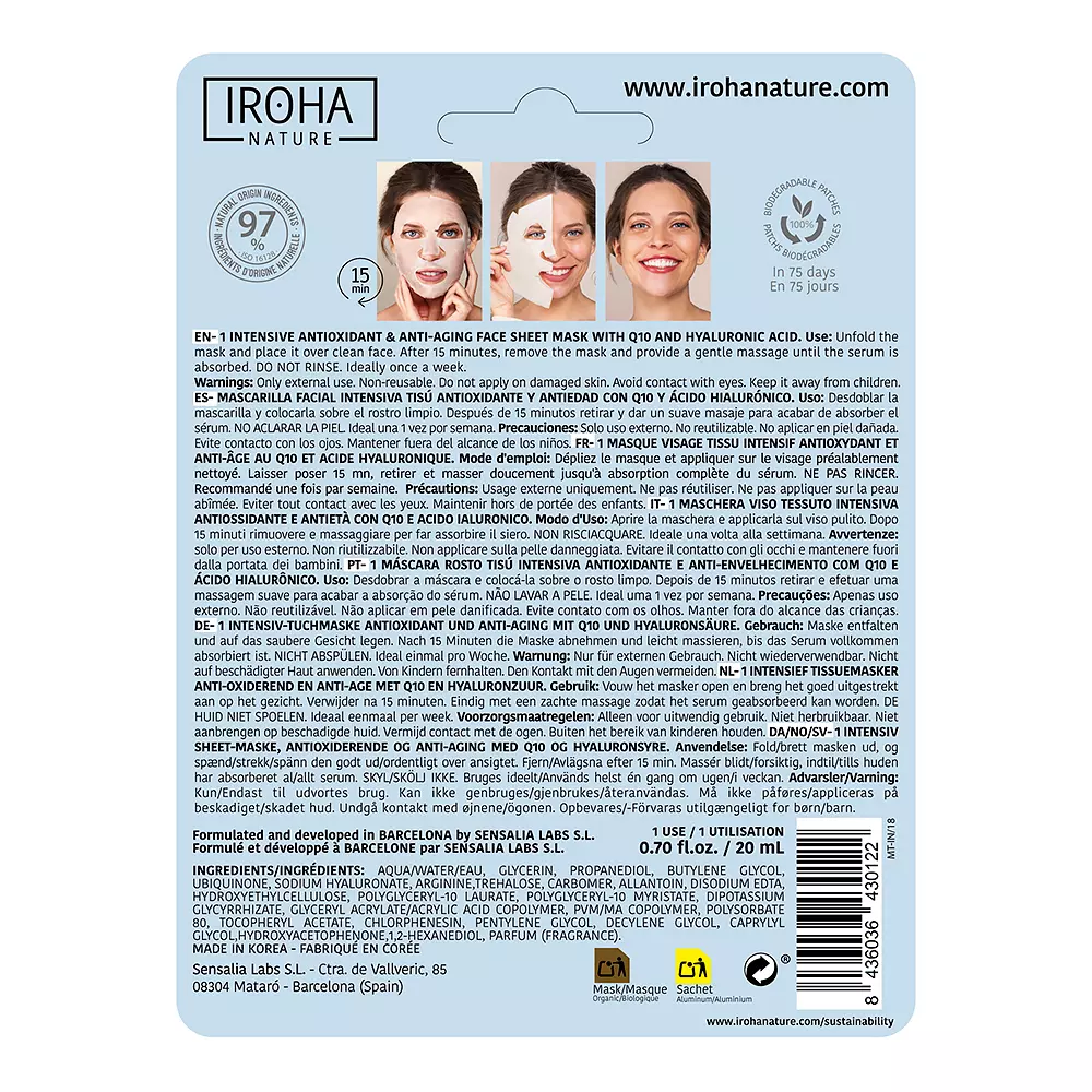 Iroha Nature TISSUE MASK antiwrinkles Q10 + hyaluronic acid