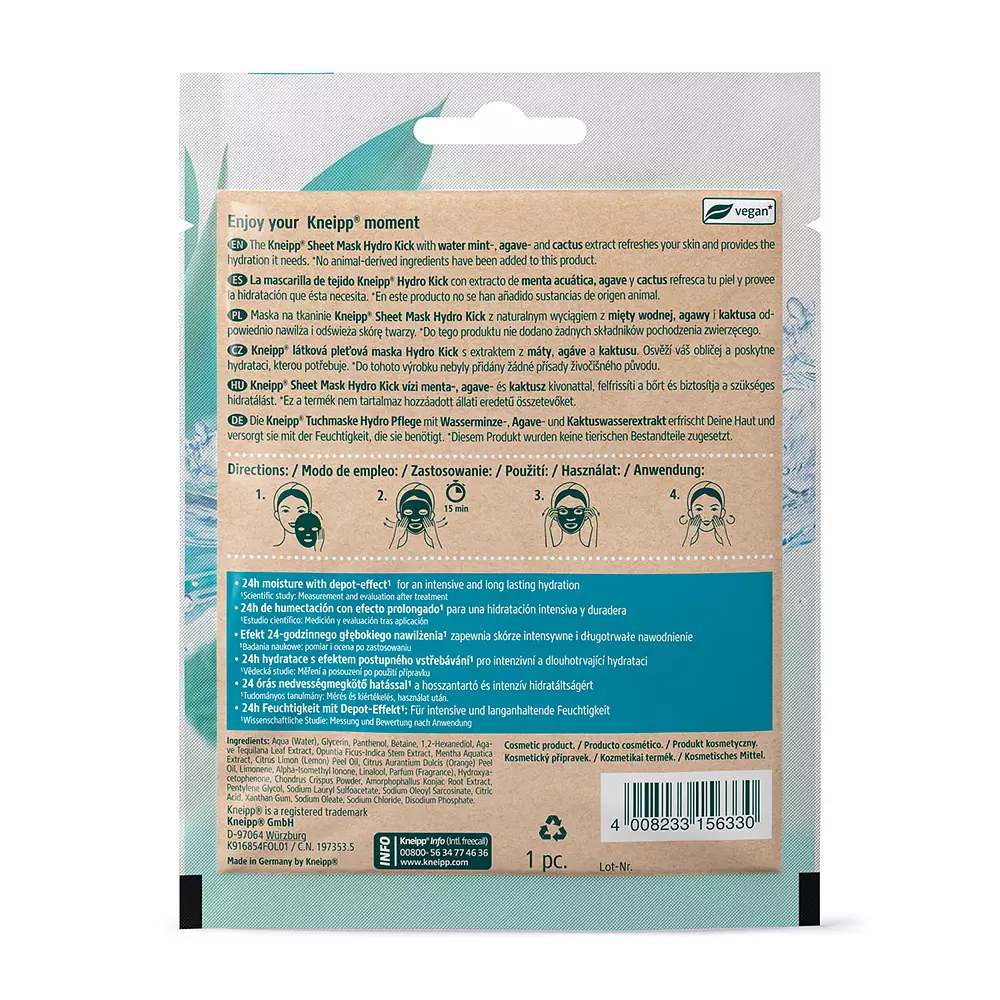 Mặt nạ giấy Kneipp HYDRO KICK cung cấp độ ẩm tức thì, giúp làn da tươi sáng và mềm mịn. Trải nghiệm dưỡng da hoàn hảo ngay hôm nay.