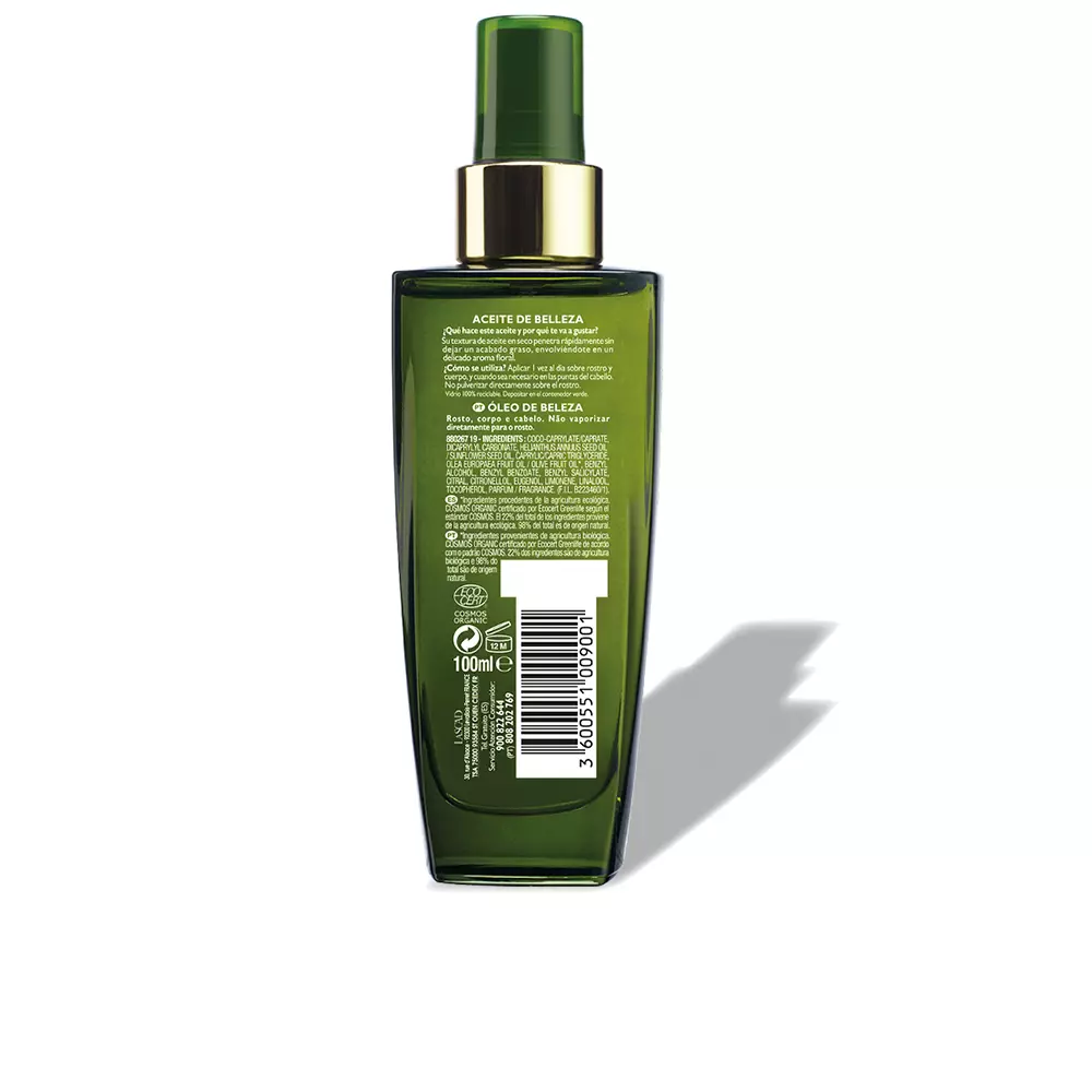ACEITE DE BELLEZA BIO rostro- cuerpo- cabello có mùi hương nhẹ nhàng, dễ chịu, tạo cảm giác thư thái khi sử dụng. Chai được làm từ thủy tinh có khả năng tái chế, thân thiện với môi trường.