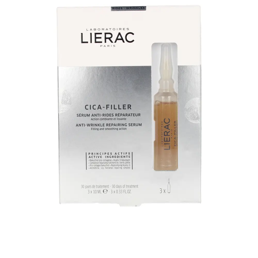 CICA- FILLER serum anti- rides réparateur của hãng Lierac là một loại huyết thanh chống nhăn với tác dụng làm lành. Sản phẩm được thiết kế để giúp giảm sự xuất hiện của nếp nhăn và đường nhăn mịn, đồng thời làm săn chắc và cải thiện độ đàn hồi của da.