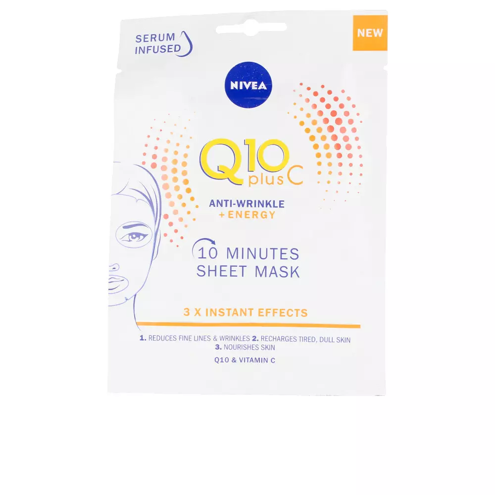Nivea Q10+ VITAMINA C anti- arrugas+energizante mascarilla f là mặt nạ dưỡng da chống lão hóa và tăng cường năng lượng cho da, là một sản phẩm chăm sóc da hiệu quả cho mọi loại da, đặc biệt là da bị lão hóa, xuất hiện nếp nhăn và thiếu sức sống.