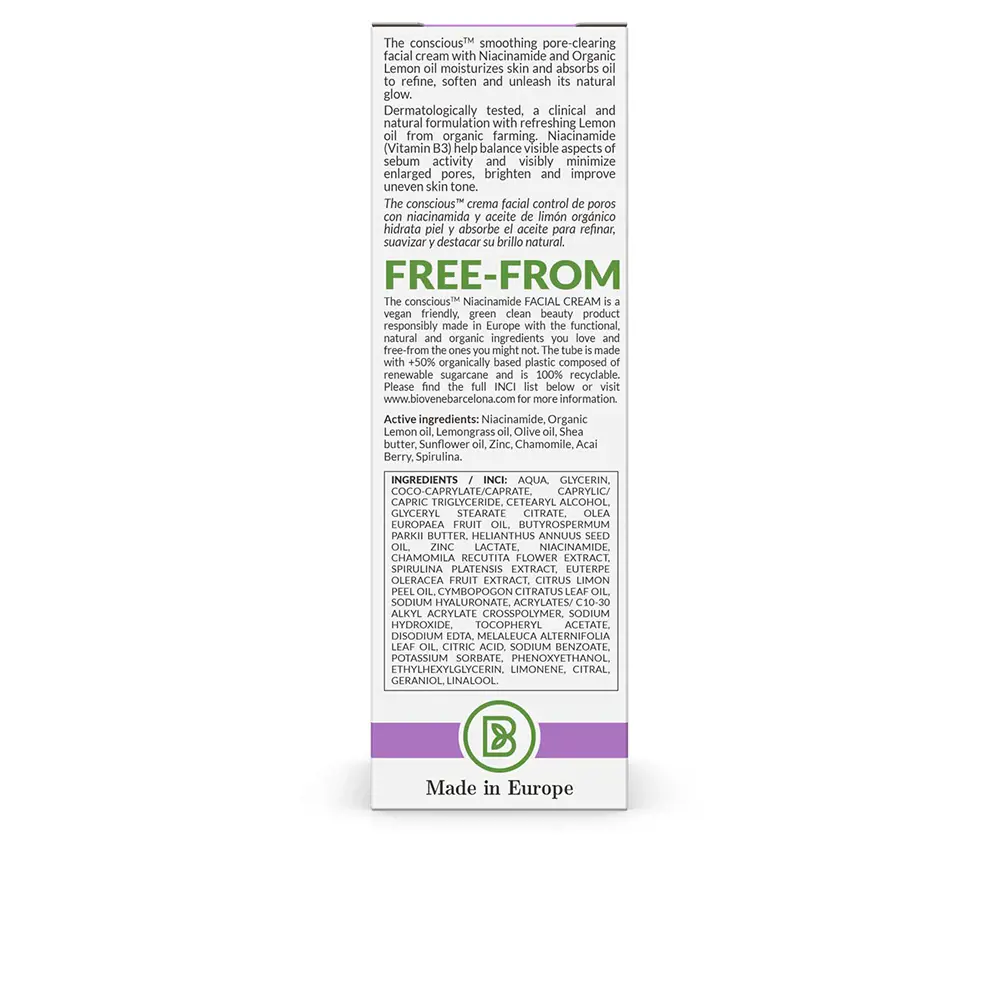 The Conscious™ NIACINAMIDE pore clearing facial cream organic lemon